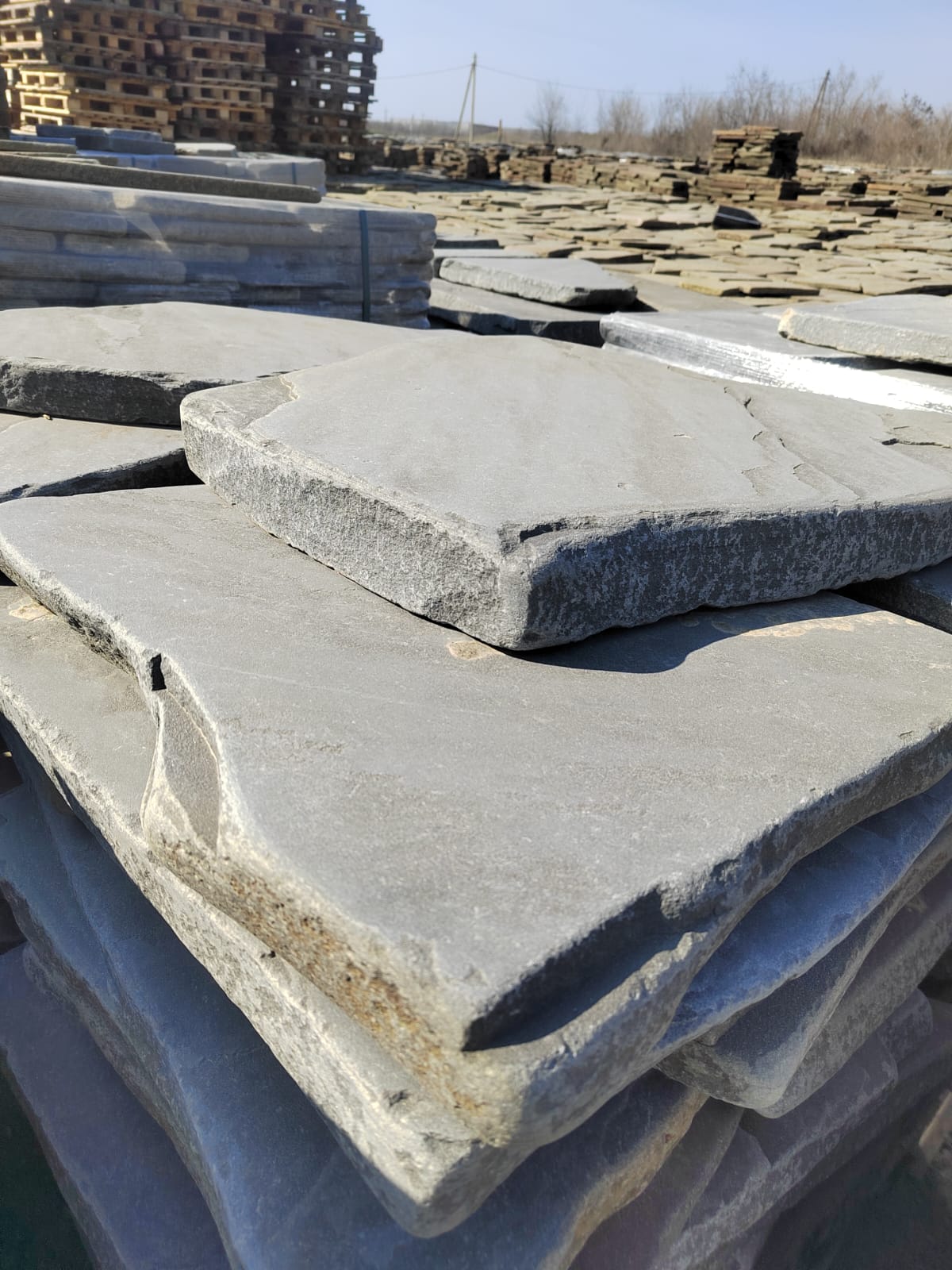 • Kamenclub.ru: Песчаник пластушка светло-серый (4,0 - 6,0 см)  купить в Новосибирске плитняк - пластушка светло-серый песчаник 12600 руб/м3   фото КАМЕНЬ КЛУБ