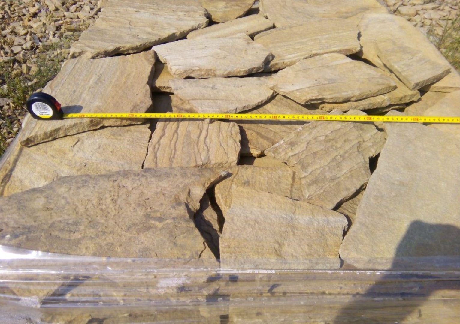 • Песчаник пластушка желтый с разводом под дерево (2 см)