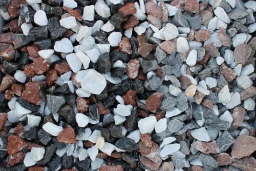 Kamenclub.ru: мраморная крошка (щебень крошка микс : белый-черный-розовый) фр. 20-40 мм. купить в Новосибирске - заказать природный камень по низким ценам оптом с доставкой от производителя - kamenclub.ru